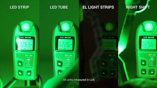 At 6 inches from our lux meter, all LED options scored in the 20's with a slight edge going to the Night Shift at 29 lux.
