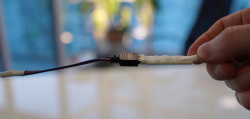 It has water resistant features like these tiny rubber gaskets to prevent water from seeping to the connectors, heat shrink tubing with glue for a water tight seal, UV resistant insulation for the LEDs, and conformal coating on the controller circuit board.
